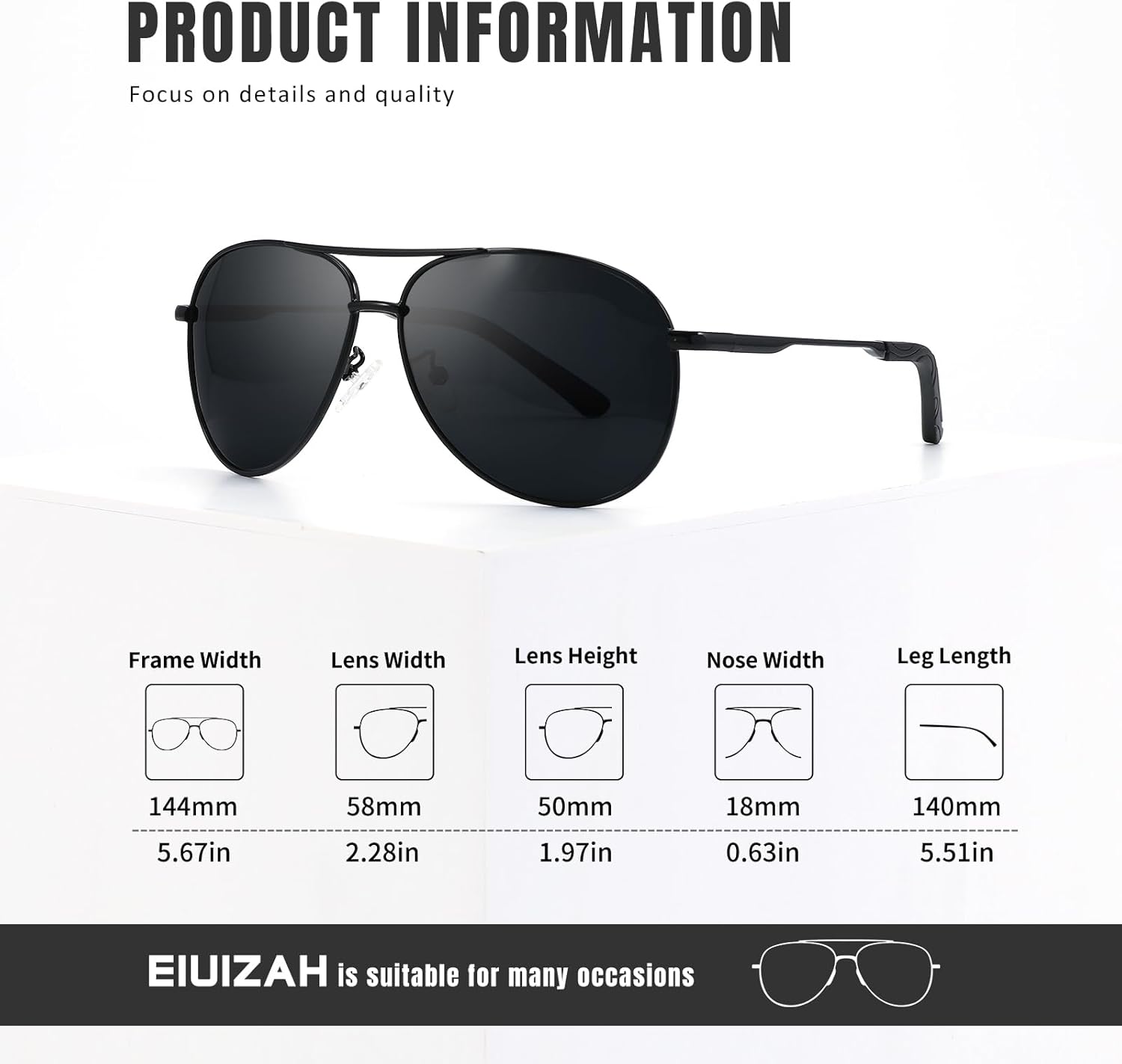 Crafted with high-quality materials, these aviator sunglasses feature polarized lenses that reduce glare, enhance clarity, and provide optimal visual comfort. The timeless aviator design is universally flattering and never goes out of style, making it a versatile accessory for any wardrobe.